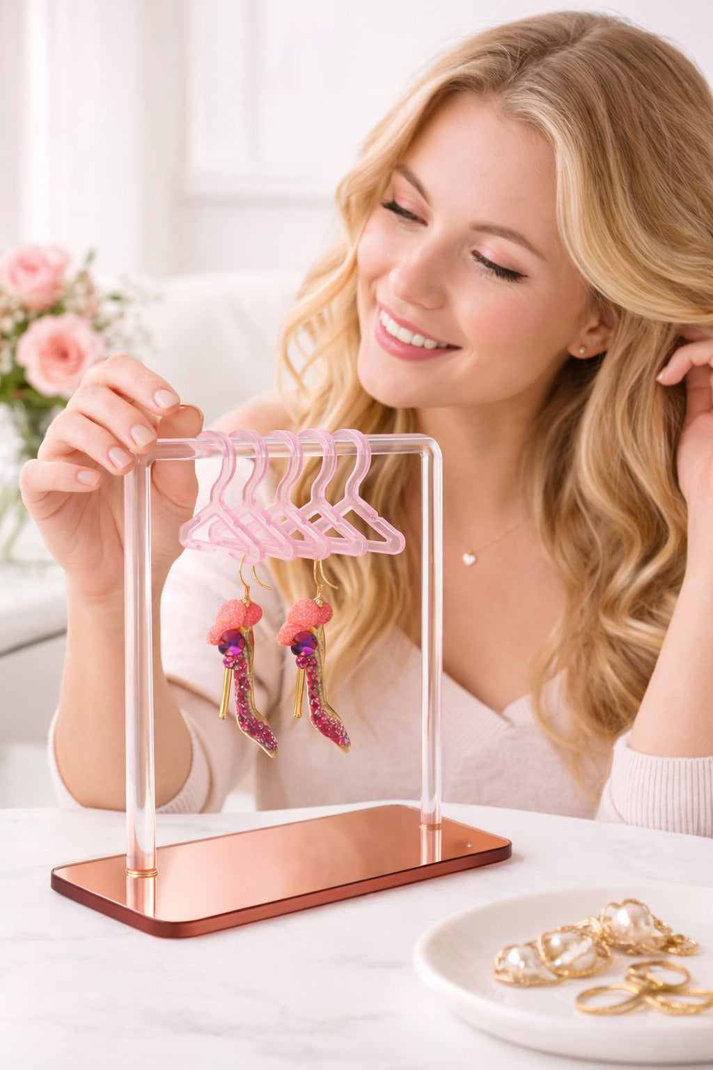 The Bloom Closet is where elegance meets organization — designed to showcase your earrings in style while keeping them safe, dust-free, and effortlessly accessible. Crafted from sleek acrylic and available in multiple colors, it transforms your vanity into a serene, feminine display.