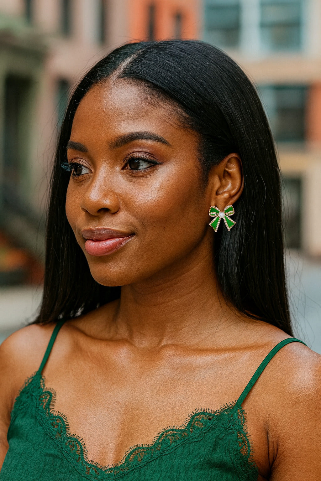 Elevate your look with a touch of whimsy using Festive Knots—our delightful bow-shaped ribbon earrings that strike the perfect balance between fun and sophistication. Whether you're dressing up for a special occasion or adding pizzazz to your everyday style, these charming accessories deliver personality with grace. A playful nod to timeless elegance, they're your go-to pick for making a gentle yet memorable impression.