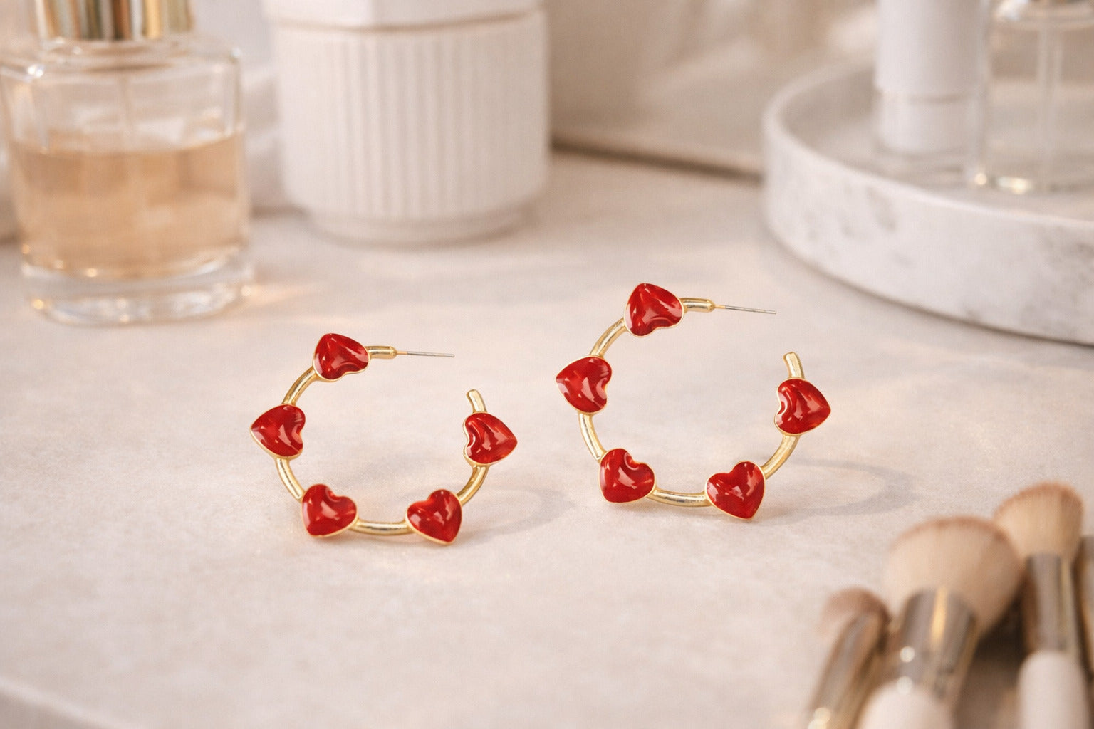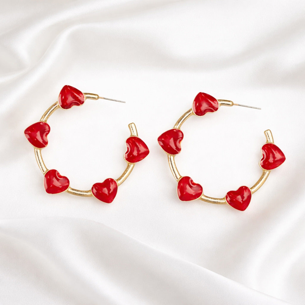 Add a touch of love to your style with our "Heart of Gold" earrings. These gold open hoop earrings feature charming red hearts that will surely capture everyone's attention. Make a statement and spread love with every step you take!