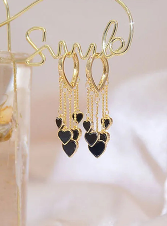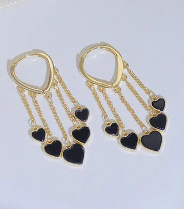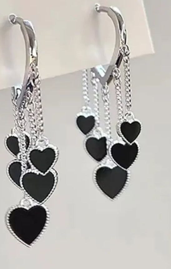 These stunning earrings feature a beautiful clip adorned with not one, not two, but five delicate heart dangles, elegantly cascading from a shimmering chain. Prepare to be captivated by the whimsical charm and romantic allure of these exquisite earrings.