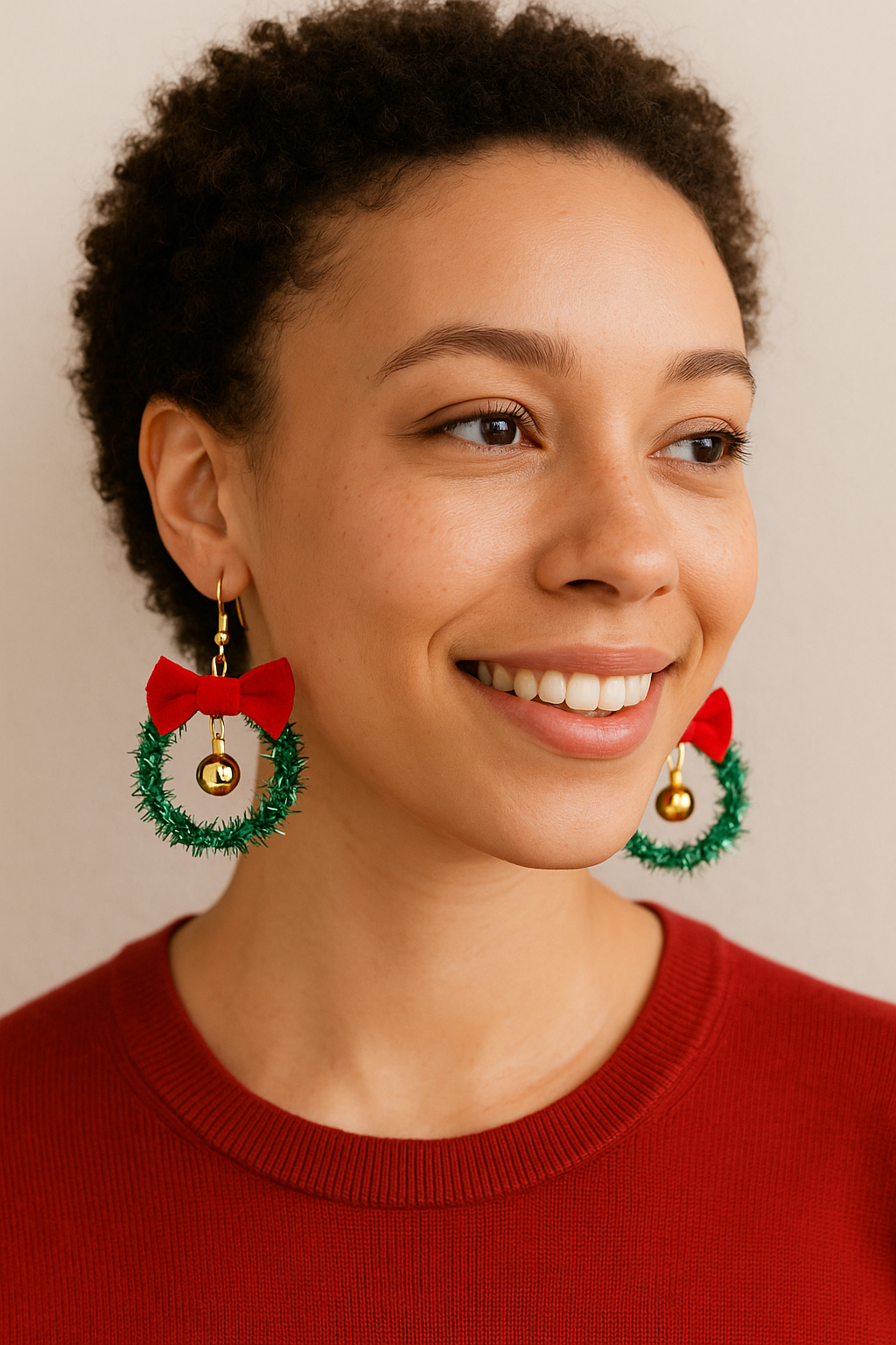 Elevate your holiday look with Jingle Glam earrings. Crafted in a wreath shape, these Christmas earrings add a touch of festive elegance to any outfit. Make a statement and spread the holiday cheer with these glamorous and sophisticated earrings.