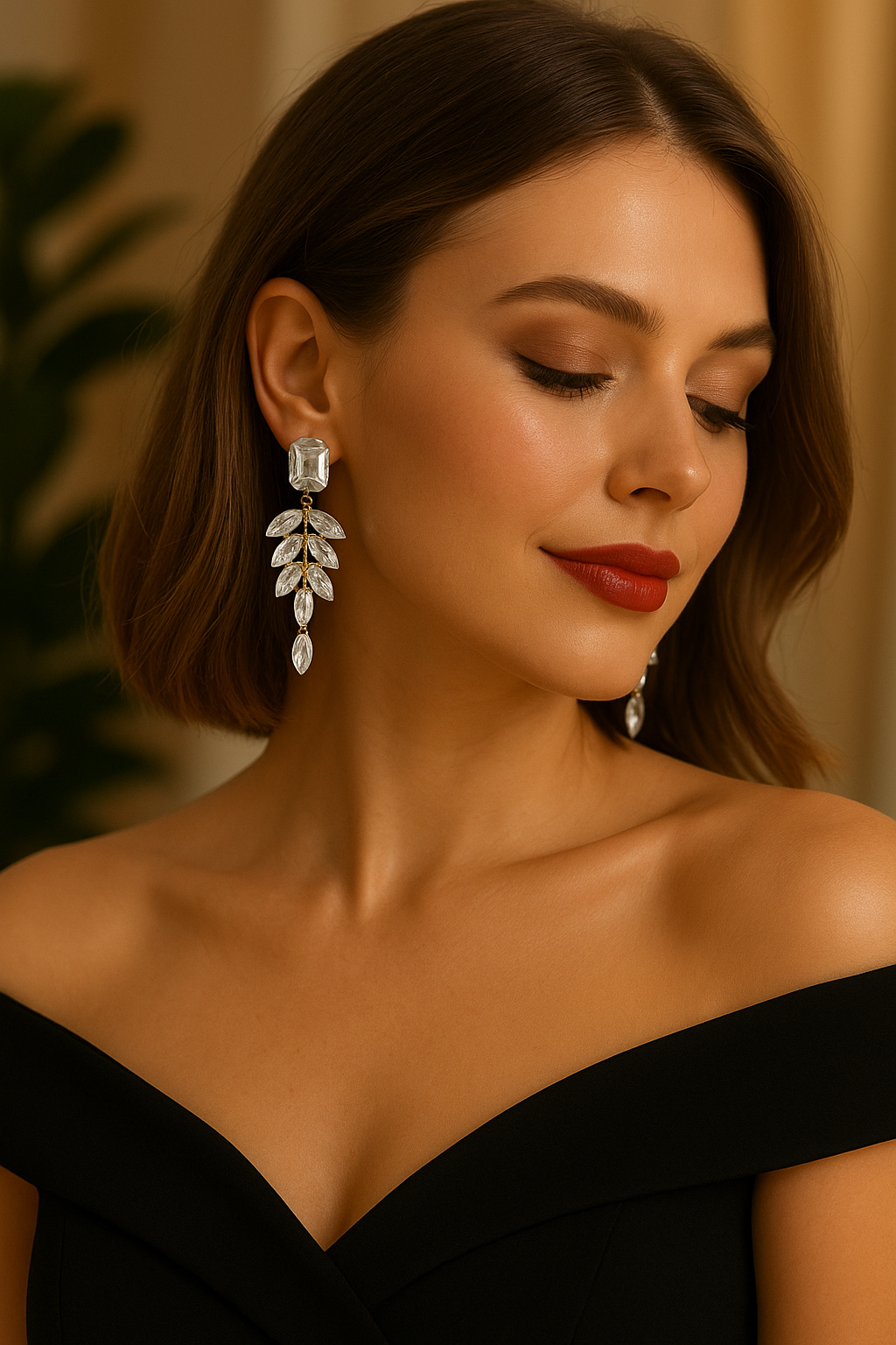 These Crystal Leaf Drop Earrings are designed to capture light and turn heads wherever you go. Featuring cascading marquise-cut crystals in a graceful leaf-inspired pattern, they bring the perfect mix of glamour and sophistication.