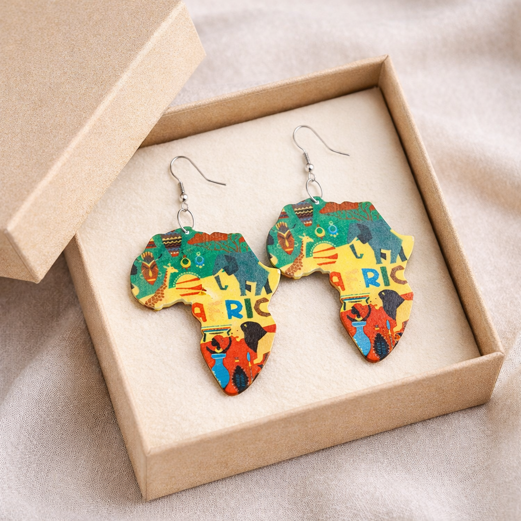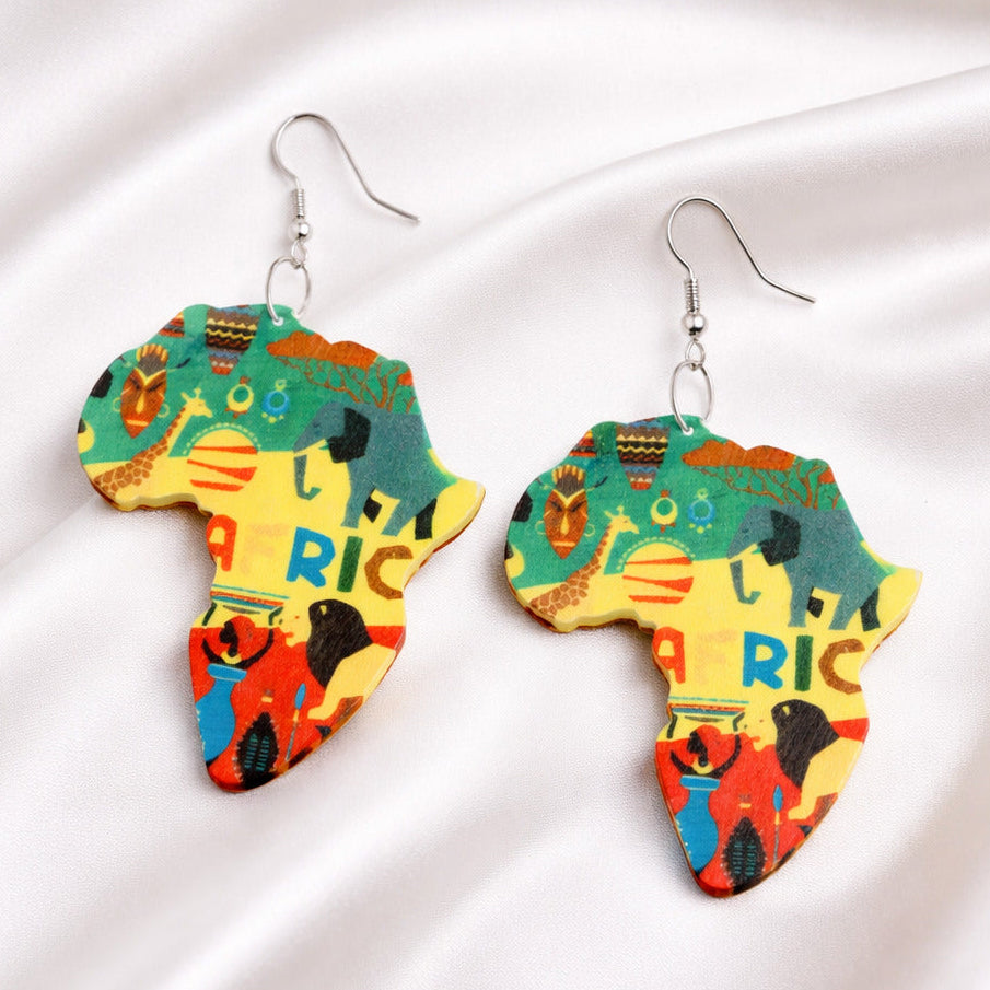 Bring the spirit, energy, and beauty of Africa to your everyday style with our Vibrant Africa Culture Map Earrings.