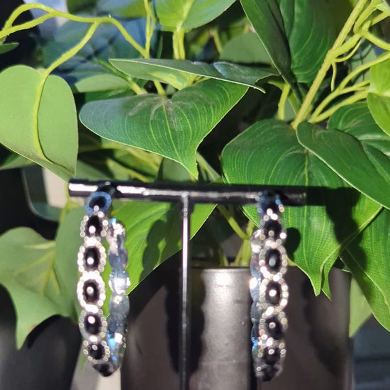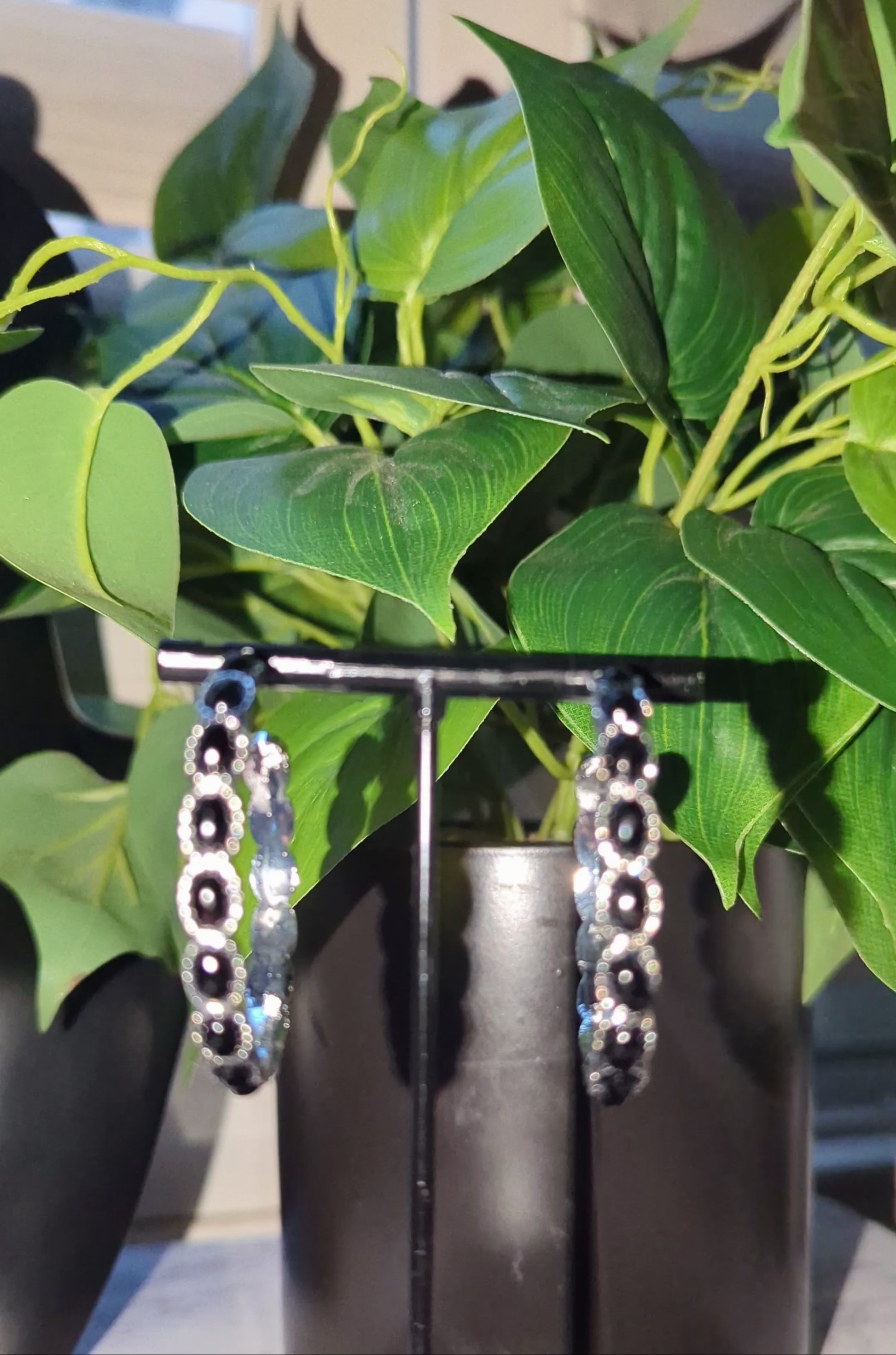 Add a mysterious flair to your ensemble with the Shadow Sphere. These silver hoops, detailed with evenly spaced black studs, blend contemporary chic with a hint of bold drama. Perfect for turning heads wherever you go."