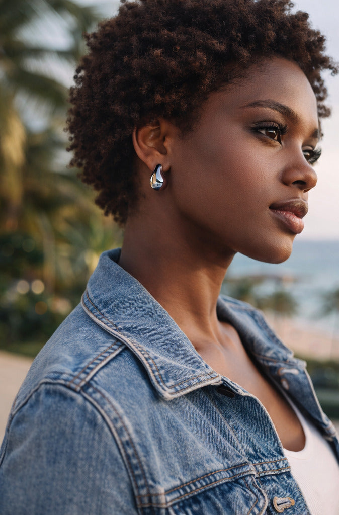 Their high-shine mirror finish catches the light from every angle, adding instant polish whether you’re heading out for a glam night, brunch, or elevating your everyday look. Lightweight yet eye-catching, these sculptural studs bring that “cool girl” energy with zero effort.