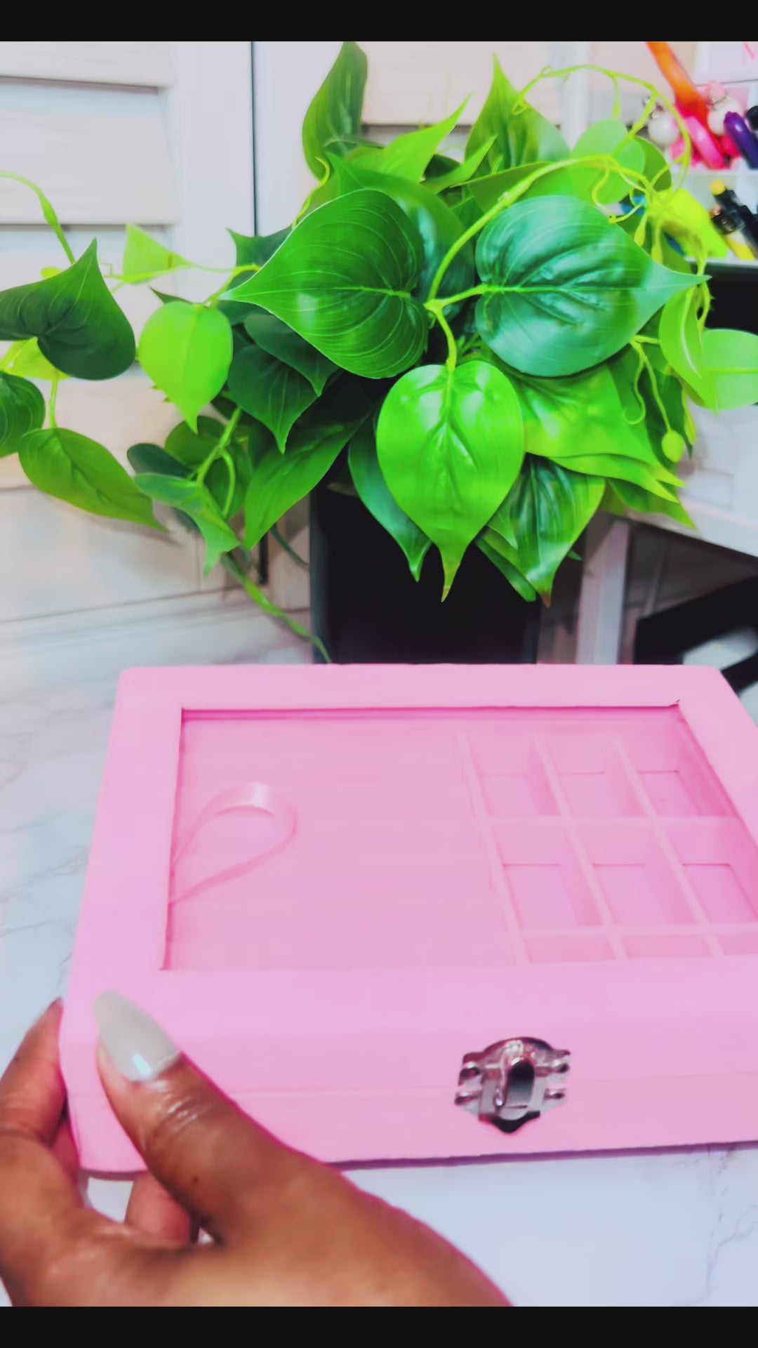 This elegant pink velvet jewelry box is designed to protect, organize, and display your favorite pieces with timeless sophistication. The soft velvet lining keeps your jewelry safe from scratches, while the clear glass lid adds a touch of luxury — allowing your treasures to shine even when tucked away.