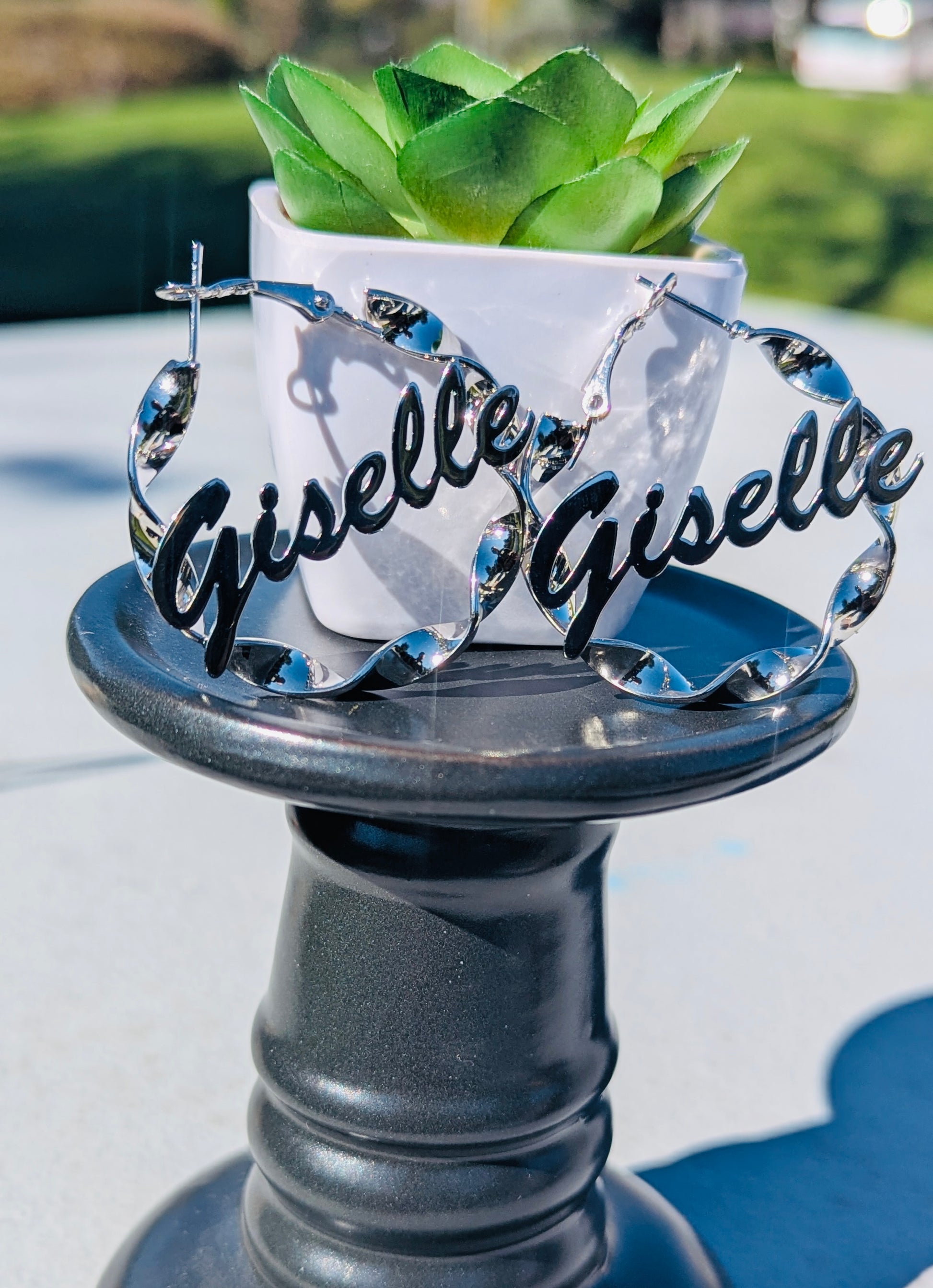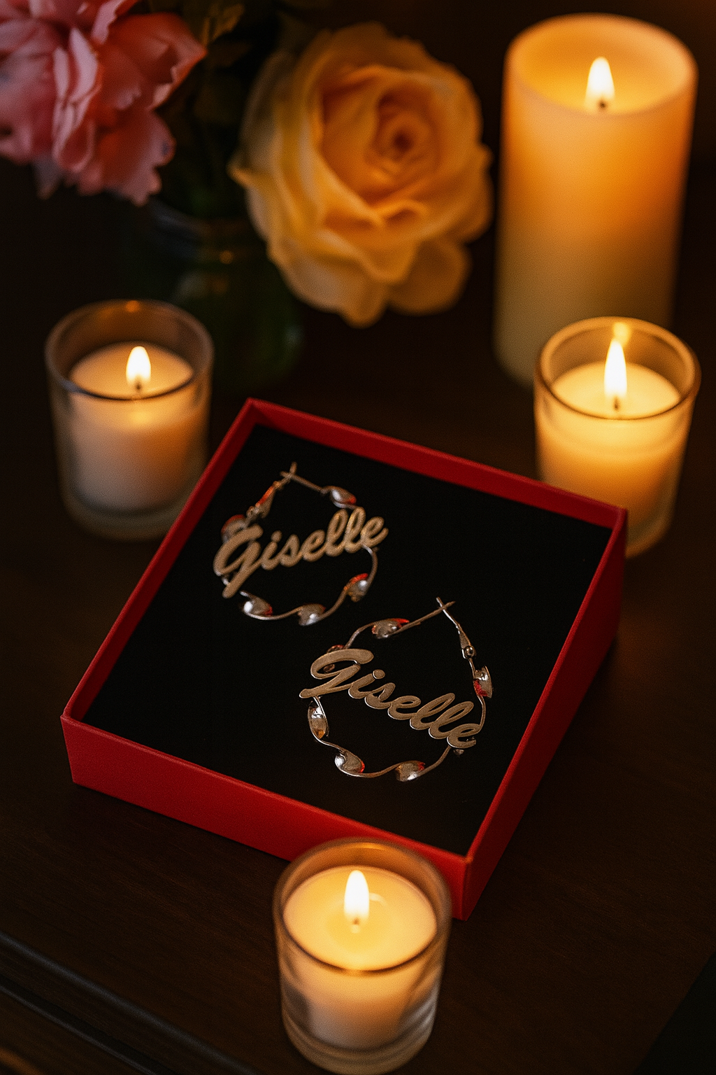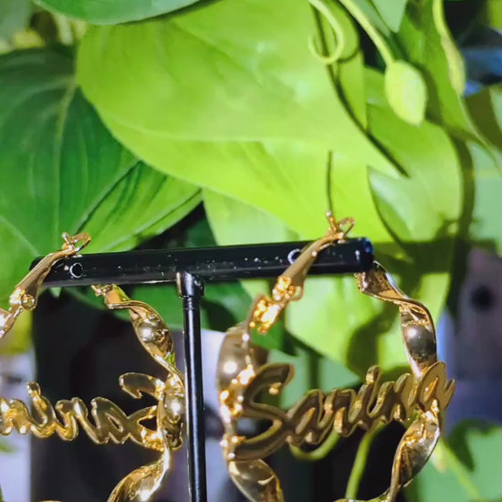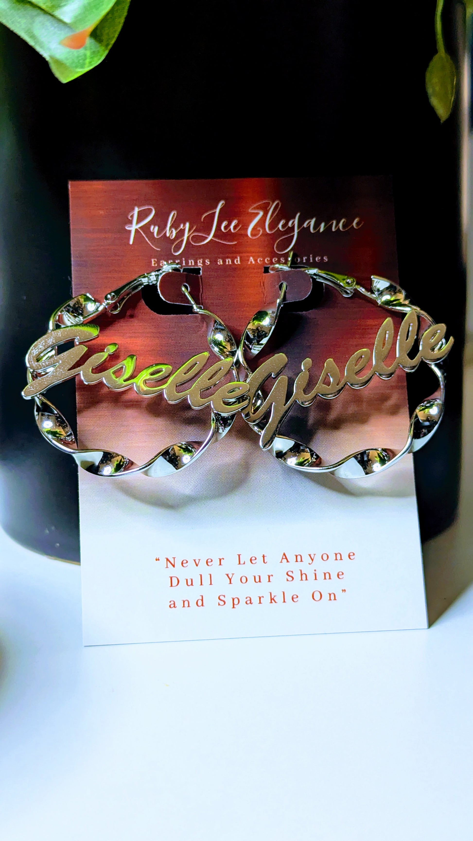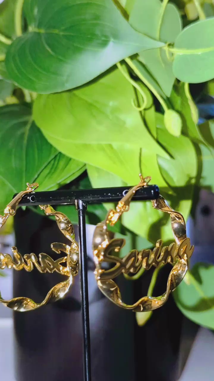 Make your mark with the Timeless Twist Personalized Hoops — a statement piece that blends bold style with timeless elegance. Designed with a luxurious twisted hoop silhouette and your name (or a loved one’s) crafted in sleek script, these earrings are made to turn heads wherever you go.